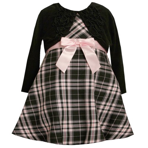 The Detailed Description of Size-24M BNJ-5047B 2-Piece BLACK PINK METALLIC LUREX PLAID SATIN RIBBON BOW FRONT RUFFLE JACKET/SHRUG and DRESS Outfit Set,B15047 Bonnie Jean Baby/INFANTFeatures