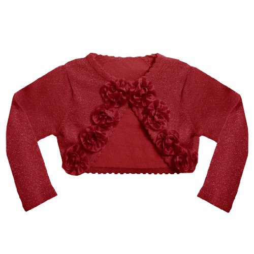 The Detailed Description of Size-12M BNJ-7613X METALLIC RED ROLLED ROSETTE Special Occasion Cropped Bolero Sweater/Shrug/Jacket,Bonnie Jean X17613 BABY/INFANTFeatures