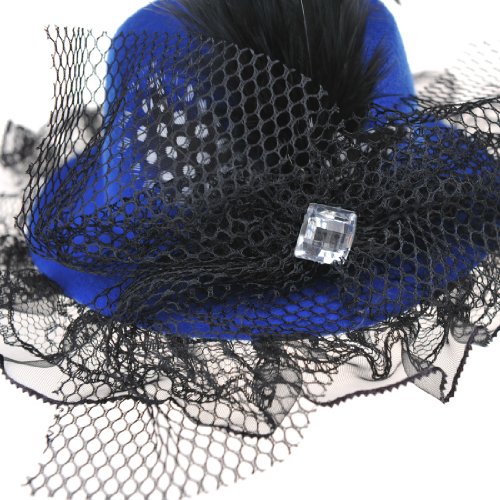 This vibrant hat is suitable for weddings. An amazing hat in royal blue is beautifully soft with feather and crystal bowknot embellishments at the front. This glamour is finished with tulle edge. The hat is made in tulle and flannelette fiber. The size of hat is 18x18x6cm,size of tulle is 4cm width.