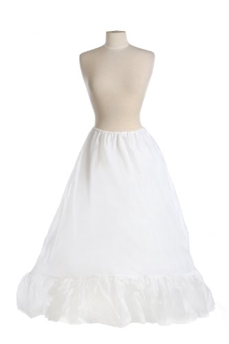 This smooth white Very Full petticoat is the perfect slip for all regular and full bridal gowns, evening dresses, and formal wear. Petticoat has a Drawstring waist closure that can be adjusted from size 4 to 24. Slip has two deep nylon net ruffles. Delicate ruffle trim.
